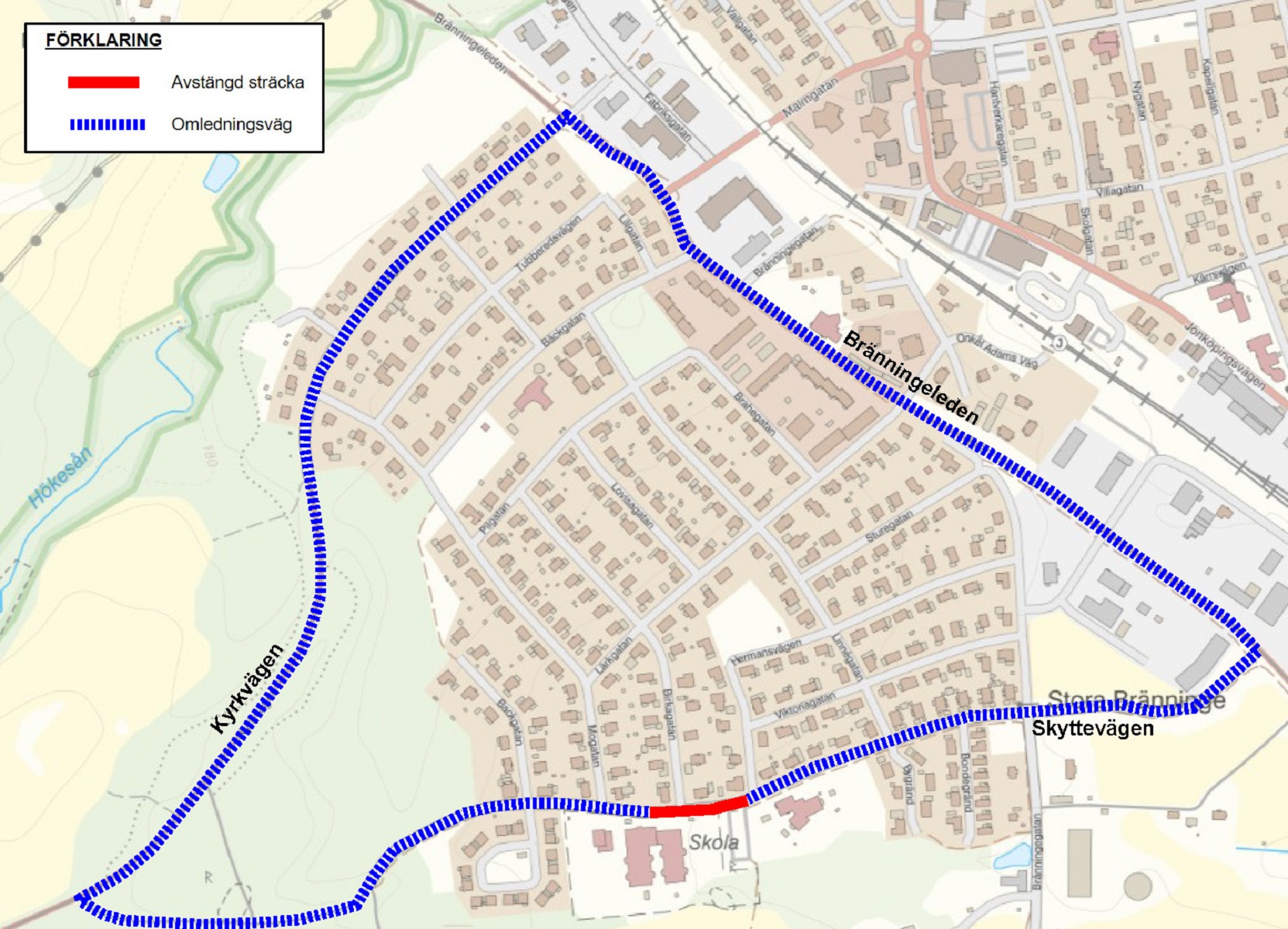 När gatan återställs passar vi på att göra skolvägen till Bränningeskolan både tryggare och trevligare. Därför rustar vi upp gång- och cykelvägar och bygger nya gångpassager som gör det enklare och säkrare för barnen att ta sig till och från skolan. Samtidigt bygger vi om parkeringen vid skolan för att skapa bättre ordning och tydliga gångvägar. På så sätt får både elever, föräldrar och andra som rör sig i området en tryggare och mer lättöverskådlig trafikmiljö.