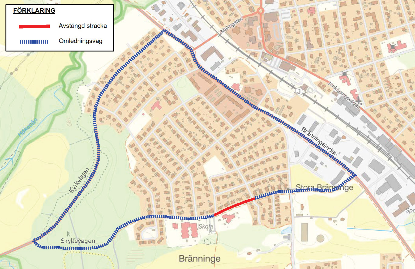 När gatan återställs passar vi på att göra skolvägen till Bränningeskolan både tryggare och trevligare. Därför rustar vi upp gång- och cykelvägar och bygger nya gångpassager som gör det enklare och säkrare för barnen att ta sig till och från skolan. Samtidigt bygger vi om parkeringen vid skolan för att skapa bättre ordning och tydliga gångvägar. På så sätt får både elever, föräldrar och andra som rör sig i området en tryggare och mer lättöverskådlig trafikmiljö.
